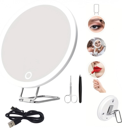 Miroir cosmétique pratique avec grossissement 30× et rétroéclairage LED, proposant 3 modes d’éclairage (froid, chaud, naturel) et une variation continue de la luminosité. Grâce à la mémoire du dernier réglage, à la ventouse puissante et au support réglable, vous pouvez facilement l’installer sur une surface lisse ou l’utiliser comme miroir de table ou à main. La batterie intégrée de 1500 mAh offre jusqu’à 7 jours d’autonomie par charge, et l’emballage comprend également une pince à épiler en acier et des ciseaux pour une finition parfaite des détails.