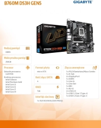 La carte mère Gigabyte B760M DS3H GEN5 pour socket LGA1700 offre le PCIe 5.0, un réseau 2,5 GbE rapide, 4 emplacements DDR5 avec XMP, deux M.2 PCIe 4.0 pour des SSD ultra-rapides et une connectivité moderne USB‑C 10 Gb/s, DisplayPort, HDMI et D‑Sub. La conception robuste Ultra Durable, le VRM hybride 6+2+1, le refroidissement intelligent Smart Fan 6 et la fonction Q‑Flash Plus pour mettre à jour le BIOS sans CPU garantissent des performances stables et un montage facile.