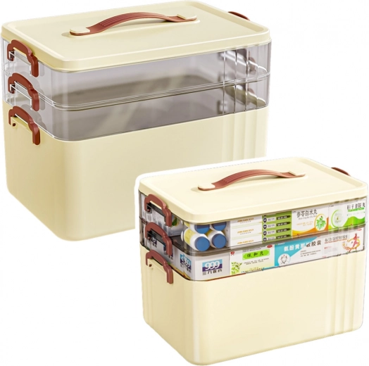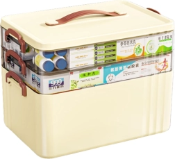 - Organisation claire : étages séparés pour médicaments, bandages et accessoires