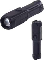 Lampe torche LED avec zoom, 3 modes, recharge USB, noire