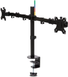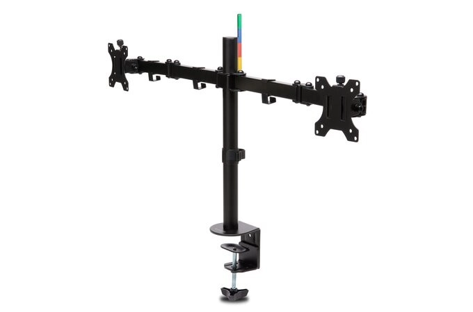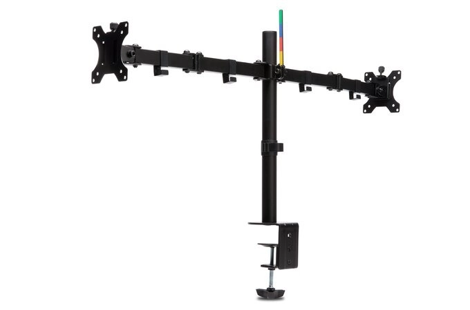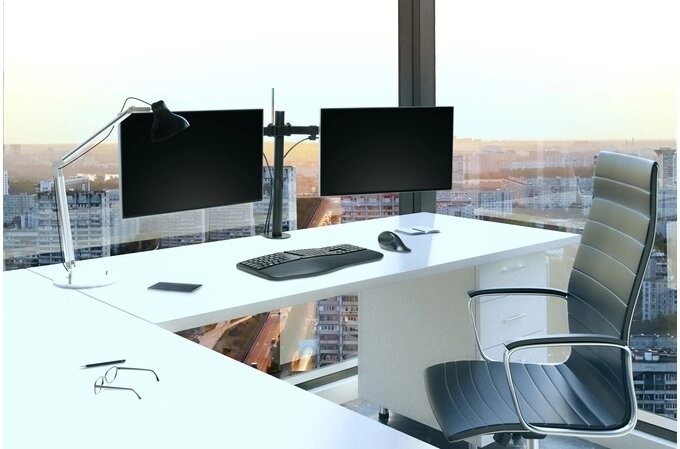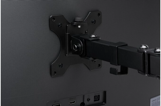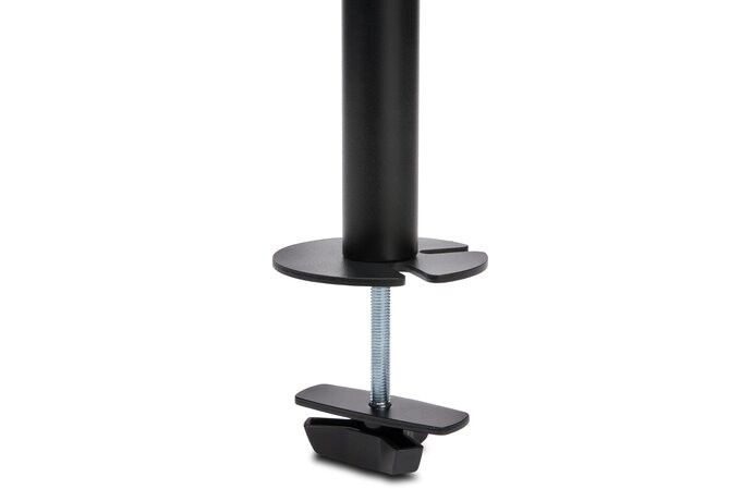 La construction robuste en acier et aluminium se fixe au bord du bureau à l’aide d’une pince de type C ou d’un passe-câbles, ce qui économise de l’espace et évite les rayures sur le plateau. Chaque bras supporte un moniteur jusqu’à 32" et 8 kg et offre des réglages fluides et précis pour un positionnement idéal dans tout environnement de travail.
