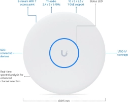 Apportez à votre réseau le tout dernier standard Wi‑Fi 7 avec le point d’accès U7 Pro XGS. L’appareil associe haute capacité, faible latence et couverture stable grâce à 8 flux spatiaux et à une gestion intelligente de l’environnement radio via un balayage spectral dédié. Idéal pour les bureaux, écoles, commerces et foyers modernes à forte densité de clients.
