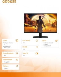 Le moniteur Q27G42ZE est conçu pour les joueurs et les utilisateurs exigeants qui recherchent une fluidité maximale et un rendu des couleurs précis. La technologie Fast IPS assure des transitions rapides et des couleurs stables sur de larges angles de vision, tandis que la fréquence de 240 Hz minimise le flou de mouvement et le tearing.