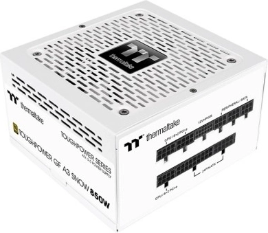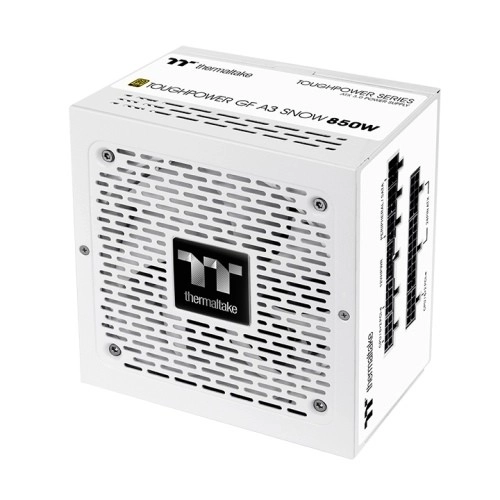 Alimentation performante de 850 W de la gamme Thermaltake Toughpower GF A3 en édition snow (blanche), offrant la certification 80 PLUS Gold, un PFC actif et un câblage modulaire pour un flux d’air optimal. Grâce au standard ATX 3.0/PCIe 5.0 (Gen5), elle alimente de manière fiable les cartes graphiques modernes ainsi que les configurations de jeu ou de travail exigeantes, avec un refroidissement silencieux assuré par un ventilateur 120 mm.