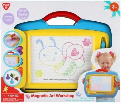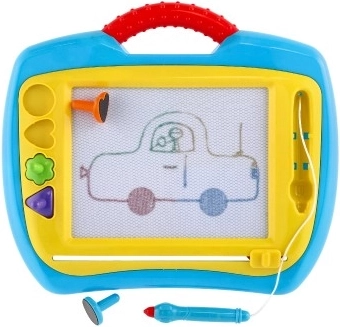La tablette magnétique est une excellente alternative au papier – les enfants peuvent dessiner encore et encore, sans feutres et sans taches. Grâce au curseur/élastique coulissant, l’image s’efface facilement et la surface est prête pour une nouvelle œuvre. Sa conception en plastique résistant avec poignée intégrée facilite le transport.