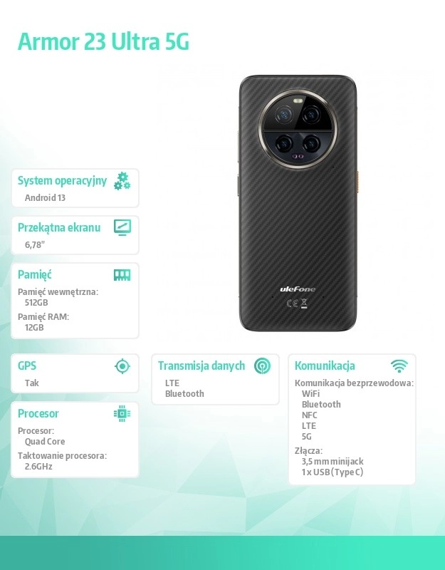 L’ULEFONE Armor 23 Ultra 5G est un téléphone outdoor fiable qui combine hautes performances, construction résistante et système photo avancé dans une élégante finition noire. Il est conçu pour les utilisateurs qui veulent un téléphone capable de gérer travail, divertissement et aventure sans compromis.