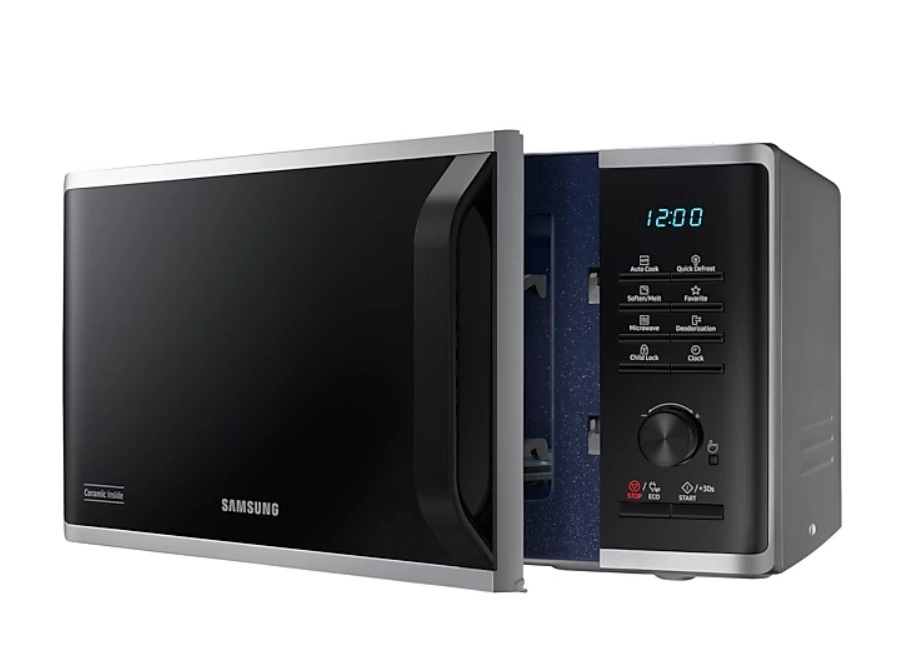 Le four à micro-ondes SAMSUNG MS23K3515AS au design élégant offre une décongélation rapide et uniforme, un revêtement intérieur céramique résistant pour un nettoyage facile et une désodorisation pour une fraîcheur durable. Grâce au mode ECO économe en énergie, vous réduisez la consommation, et avec le Menu Auto ainsi que les fonctions de fonte du beurre et du chocolat, vous cuisinez et réchauffez facilement sans brûler.