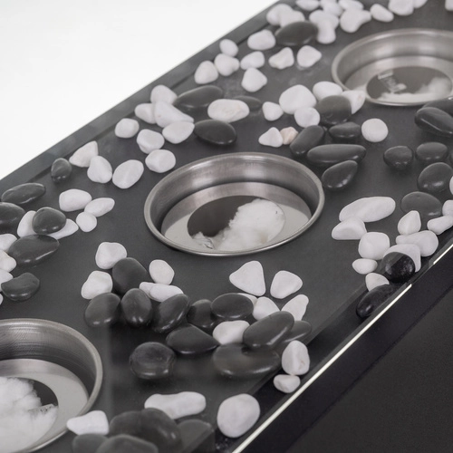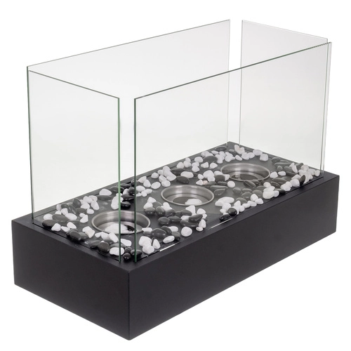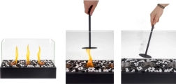 Elle comprend 3 brûleurs en acier inoxydable avec fibre céramique absorbante pour une combustion prolongée, des galets décoratifs blancs et noirs ainsi qu'un outil d'extinction. Son montage et son utilisation faciles en font un choix idéal pour créer rapidement une ambiance et de la chaleur lors des soirées fraîches.
