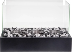 Cheminée bio autoportante élégante à bioéthanol offrant une combustion propre, sans fumée ni odeur, protégée en toute sécurité par 4 parois en verre. Elle crée une atmosphère chaleureuse et une agréable sensation de chaleur aussi bien sur la terrasse que dans le salon, avec une structure stable, une utilisation simple et, dans l'emballage, vous trouverez également des galets et un outil d'extinction.