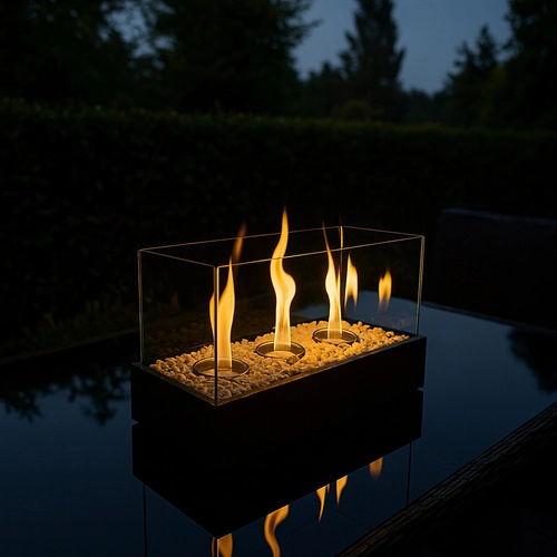 La cheminée bio KAMINER est idéale pour un appartement, une maison ou une terrasse. Elle fonctionne au bioéthanol et, grâce à une combustion propre, ne produit ni fumée, ni suie, ni odeur désagréable – aucun conduit n'est nécessaire. Quatre parois en verre protègent la flamme du contact et des courants d'air, tandis que le corps noir de style loft s'intègre parfaitement aux intérieurs modernes.