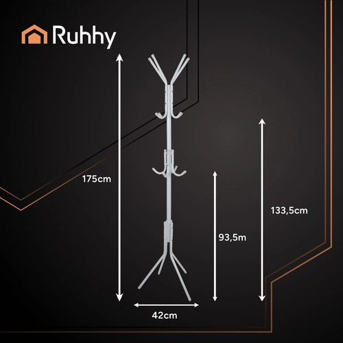 Le portant sur pied RUHHY est une solution pratique pour la maison comme pour le bureau. Il offre trois niveaux de suspension, une structure métallique stable sur 4 pieds robustes et une utilisation universelle, de l’entrée à la salle d’attente. Facile à entretenir, il est autoportant et ne nécessite ni perçage ni outils spéciaux.