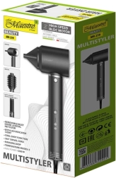 Le multistyler universel MAESTRO MR-230 combine 3 appareils en 1 – un sèche-cheveux puissant, une brosse soufflante de mise en forme et un fer à boucler automatique 2-en-1. Avec une puissance de 1200 W, un débit d’air de 18 m/s et des embouts magnétiques, il assure un séchage rapide, du volume et des ondulations naturelles. Il intègre un moteur BLDC à 110 000 tr/min, 2 niveaux de température, air froid et un cordon rotatif à 360° pour une utilisation confortable.