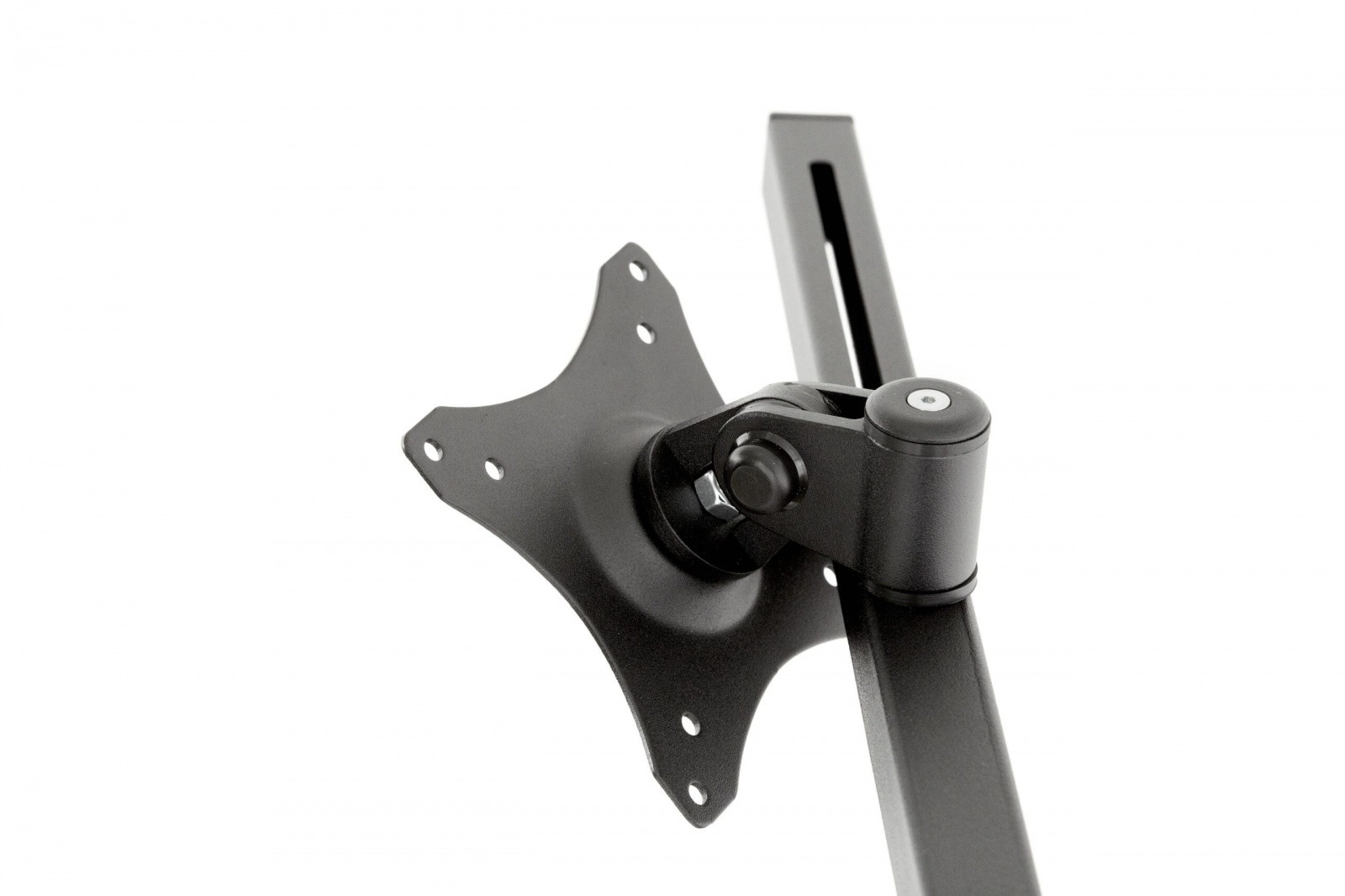 Créez un poste multi-moniteurs efficace avec ce support pour quatre écrans 19–27". Sa construction robuste et les standards universels VESA 75x75 et 100x100 assurent une fixation sûre, tandis que le réglage fluide de l’inclinaison et de la rotation permet un positionnement précis pour un travail confortable, même en usage intensif toute la journée.