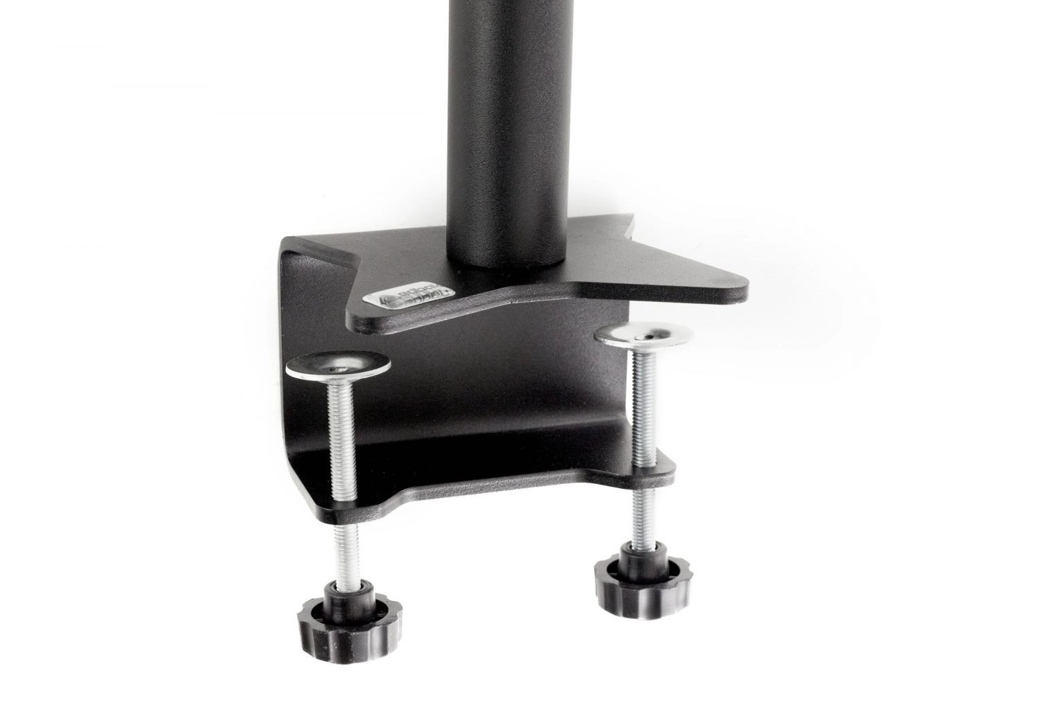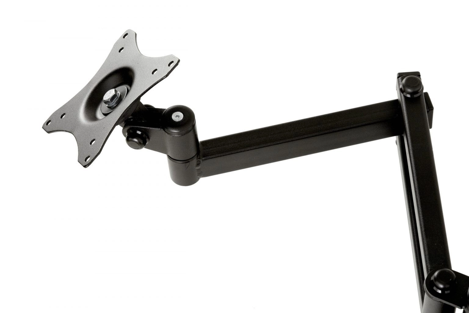 Le double bras à articulations multiples permet d’orienter, d’incliner et d’étendre l’écran rapidement. Grâce à la compatibilité VESA 75×75 et 100×100, l’installation est simple et rapide. Un système de gestion des câbles est également inclus pour maintenir un poste de travail ordonné et esthétique.