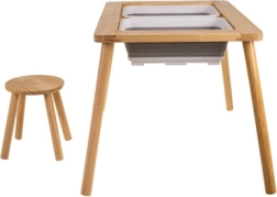 Découvrez une façon intelligente et sûre de jouer et d’apprendre : cette table sensorielle en bois avec chaise de la marque KRUZZEL offre un plateau réversible, 2 bacs amovibles pour le sable ou l’eau et une structure stable en hêtre aux bords arrondis. Idéale pour les activités Montessori, le dessin, la construction et le tri – tout au même endroit, facile à nettoyer et à garder en ordre.