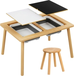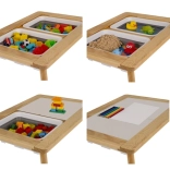 Changement d’activité rapide : couvrez les bacs pour le dessin et la construction, ou découvrez-les pour le jeu sensoriel avec du sable et de l’eau. Nettoyage et organisation des accessoires facilités.