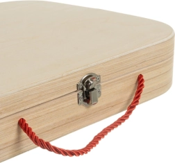 Un coffret en contreplaqué durable avec fermeture métallique et poignée en corde garde toutes les pièces ensemble et facilite le rangement comme le transport.