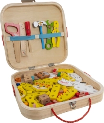 - Set d’outils en bois pour enfants dans une mallette
