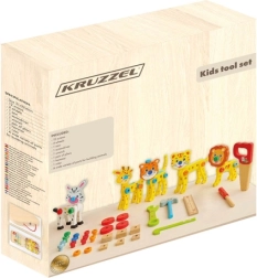 Découvrez la mallette d’outils en bois pour enfants KRUZZEL, à la fois ludique et éducative. Les enfants peuvent construire des animaux, des véhicules et des robots, développer leur créativité, leur logique et leur motricité fine. Des pièces lisses et sûres et un solide coffret en bois avec poignée garantissent l’ordre et un transport facile.