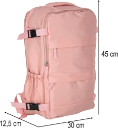 Pratique sac à dos rose pour la ville et le voyage, dimensions 45 × 30 cm, doté de 3 compartiments séparés, de poches de rangement organisées et de poches latérales pour bouteille. Tissu Oxford 420D résistant, sangles de compression pour sécuriser le contenu et bretelles confortablement rembourrées pour un port prolongé en tout confort.