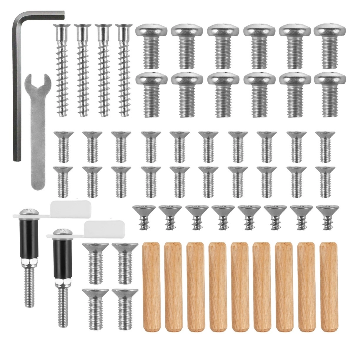 Sont inclus : un marqueur avec gomme, 5 punaises magnétiques, 3 aimants, 4 crochets, 2 gobelets porte-stylos, un porte-gobelet et une étagère.