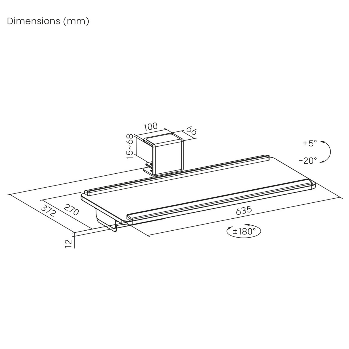 Améliorez votre confort de travail avec le support sous-plan pour clavier MC-108B, qui se fixe au plateau de table à l’aide d’un système de serrage (clamp) robuste sans perçage. Sa large tablette coulissante libère de la place sur le bureau, offre un positionnement ergonomique du clavier et intègre un tiroir latéral pour accessoires. Des bords relevés empêchent les objets de glisser, et le montage est rapide grâce au kit d’installation fourni.