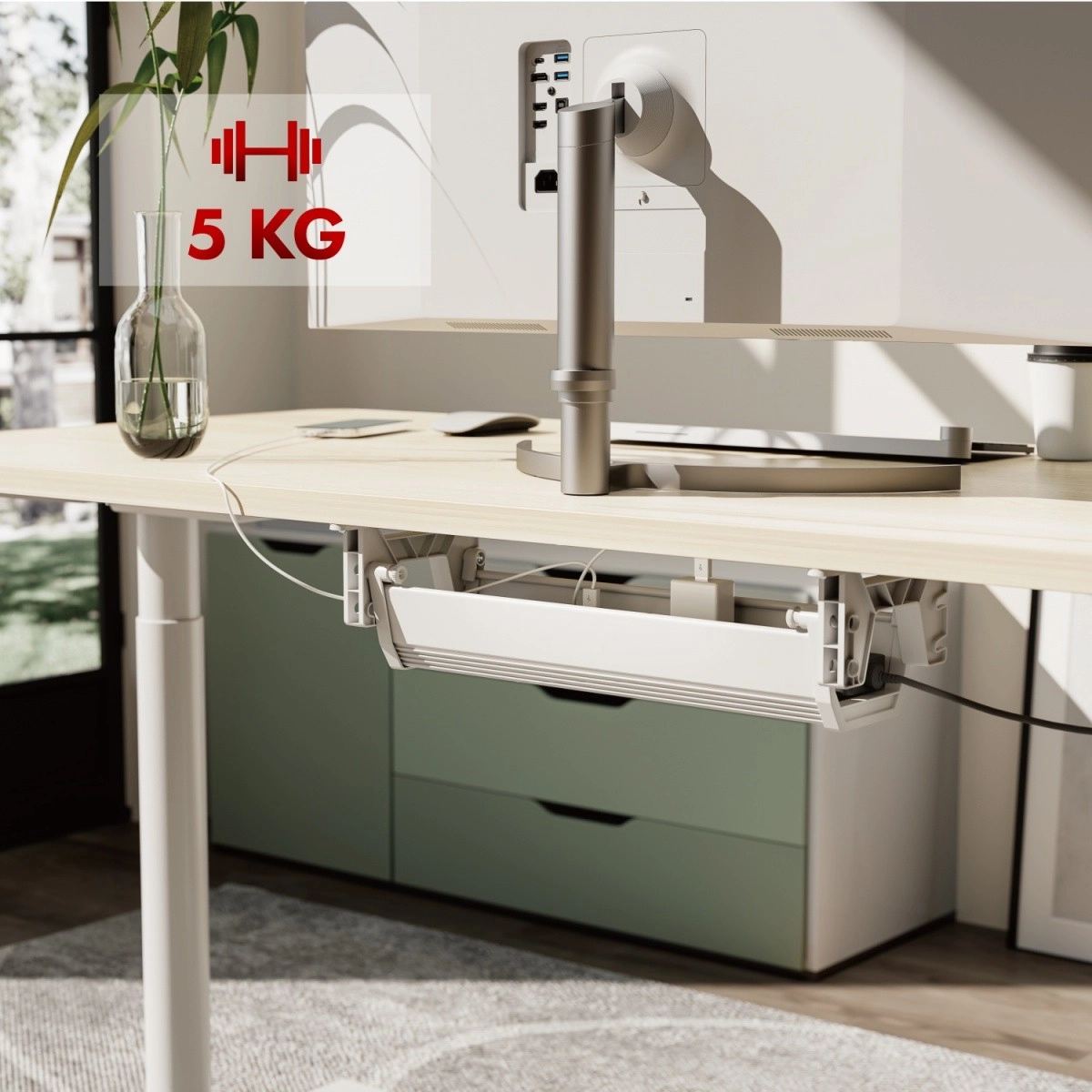 Maclean MC-106W est une solution pratique pour acheminer discrètement le câblage sous le plateau d’un bureau au bureau, à la maison ou en coworking. Grâce à sa conception ouverte et bien pensée, vous organisez facilement rallonges, alimentations et câbles de données, éliminant le désordre et le risque de trébucher.
