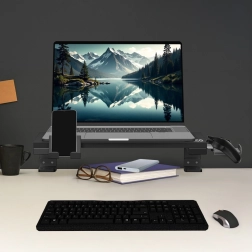 En surélevant vos appareils, vous libérez l’espace sous la plateforme pour le clavier, la souris ou d’autres accessoires et conservez un poste de travail propre et ordonné.