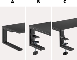 - Sans perçage : serre-joints à vis pour une fixation rapide sur la plupart des bureaux.
