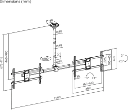 Grâce à la large compatibilité VESA jusqu’à 600×400 et à la capacité de charge de 40 kg par écran, il prend en charge la plupart des TV et écrans avec une diagonale de 34–60". Le mât télescopique pour le réglage en hauteur, l’inclinaison jusqu’à 25°, la rotation à 360° et le recalage fin ±3° permettent un alignement précis des écrans même après l’installation. Le passage de câbles intégré garde l’installation propre et sécurisée.