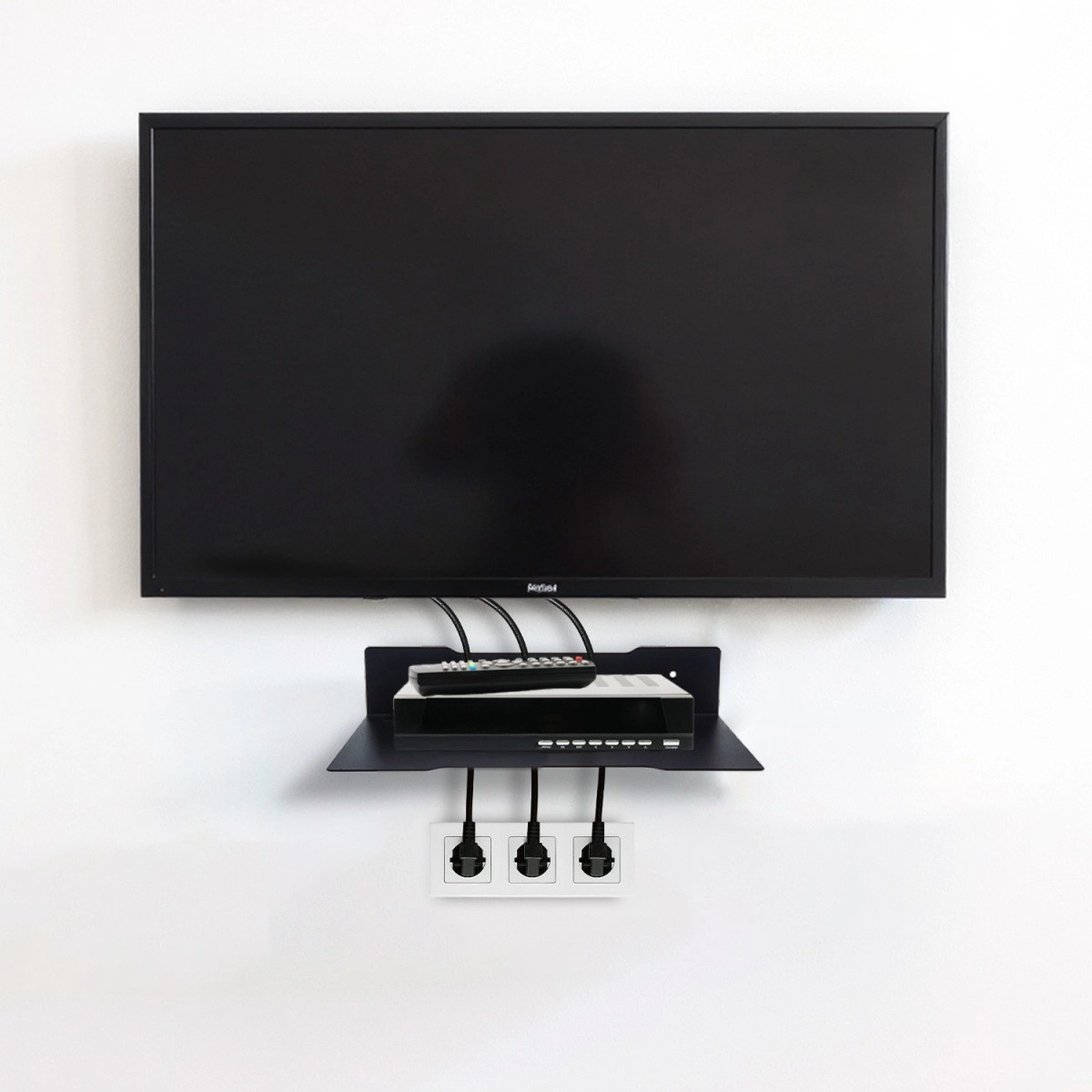 Grâce à sa construction stable en acier peint par poudrage, l’étagère supporte en toute fiabilité des appareils jusqu’à 5 kg – des décodeurs et routeurs aux petites consoles et haut-parleurs. Elle convient au salon, au bureau et aux espaces commerciaux où une installation propre et fonctionnelle est requise.
