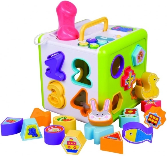 Le cube est équipé d'effets lumineux et sonores qui renforcent l'expérience de jeu et aident au développement sensoriel de l'enfant. De plus, grâce à une poignée pratique, il est facile à transporter.