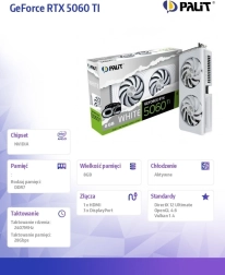 La Palit GeForce RTX 5060 Ti White OC est conçue pour les joueurs et créateurs souhaitant associer un look blanc épuré à un refroidissement efficace et des performances stables. Deux ventilateurs axiaux de 95 mm assurent un fonctionnement silencieux et une évacuation fiable de la chaleur, tandis que le format 2 slots facilite l’installation dans des boîtiers PC plus compacts.