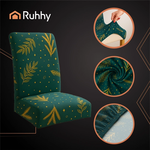 Les housses élastiques universelles RUHHY de couleur verte élégante avec un discret motif festif apportent une touche de solennité à l’intérieur tout en assurant une protection pratique contre les saletés, les poils d’animaux et les traces d’usage quotidien. Le tissu plus épais et résistant ne déteint pas, n’est pas transparent et lisse joliment l’aspect de l’assise et du dossier.