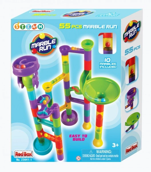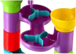 Cette piste à billes en plastique de 55 pièces permet aux enfants de construire des circuits variés et de tester quelle bille sera la plus rapide. Grâce aux différents obstacles et éléments rotatifs, chaque descente est différente et pleine de suspense. Le set stimule la créativité, la patience et la coordination œil-main.