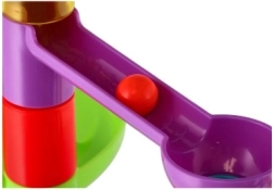Les composants, aux couleurs joyeuses, s’emboîtent facilement et sont conçus pour un jeu en toute sécurité. Les enfants peuvent expérimenter avec la hauteur, l’inclinaison et l’ordre des obstacles, et ainsi comprendre les principes de base de la vitesse et du mouvement gravitationnel.