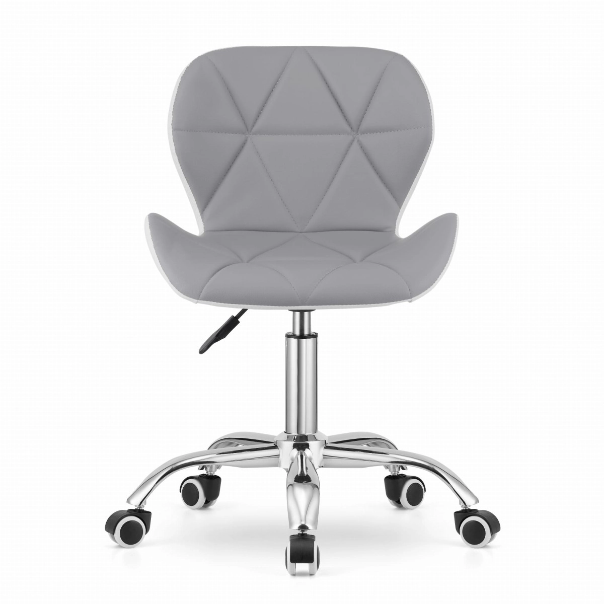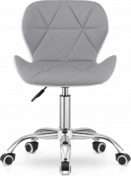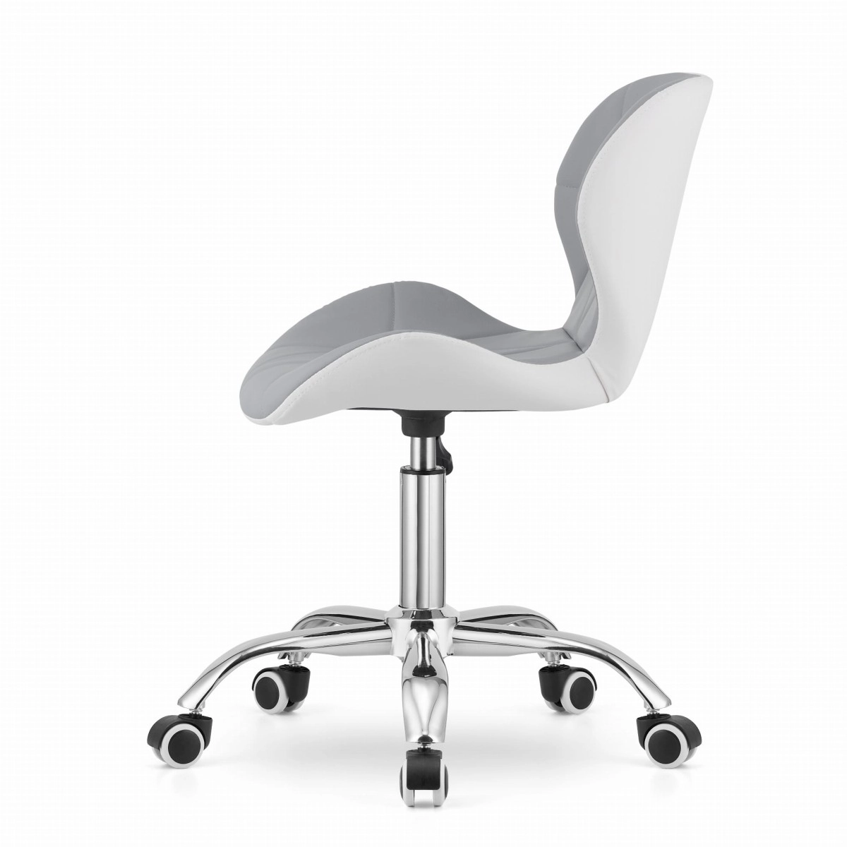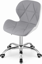 La chaise pivotante moderne AVOLA en coloris gris‑blanc séduit par son large dossier, son revêtement en cuir écologique et sa base chromée à 5 branches avec roulettes caoutchoutées. Elle offre une forme ergonomique, un réglage en hauteur et une structure durable et stable, idéale pour une chambre d’enfant, un studio, un bureau ou une réception.