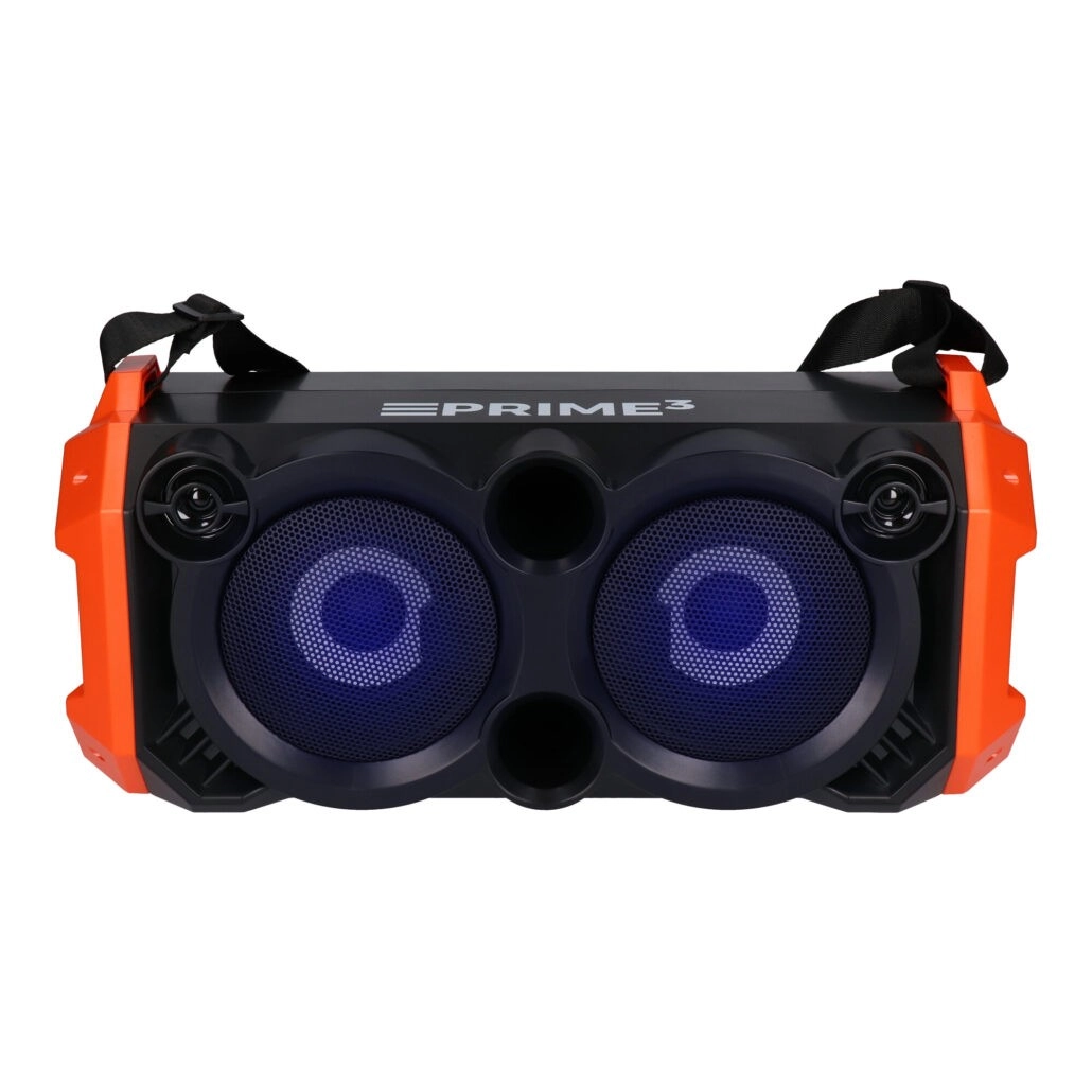 Profitez de vos hits préférés partout avec l’enceinte PRIME3 SLAM! APS31. Elle offre le Bluetooth, le karaoké avec entrée micro 6,5 mm, la radio FM, la lecture depuis USB et microSD et un son impressionnant avec Bass Reflex. Grâce à une autonomie jusqu’à 5 heures, un égaliseur et un éclairage LED, elle est idéale pour les fêtes, les événements sportifs et les présentations.