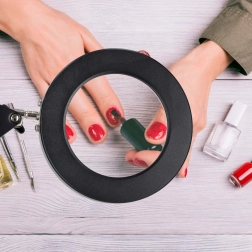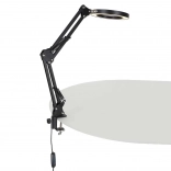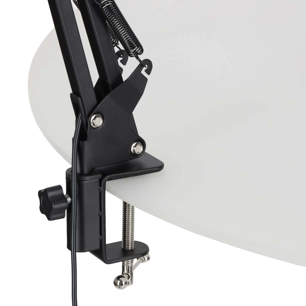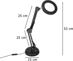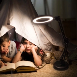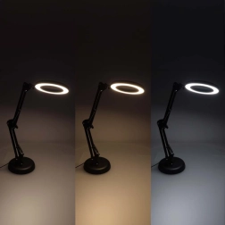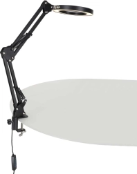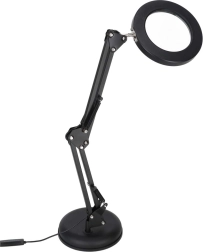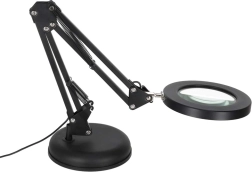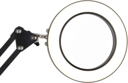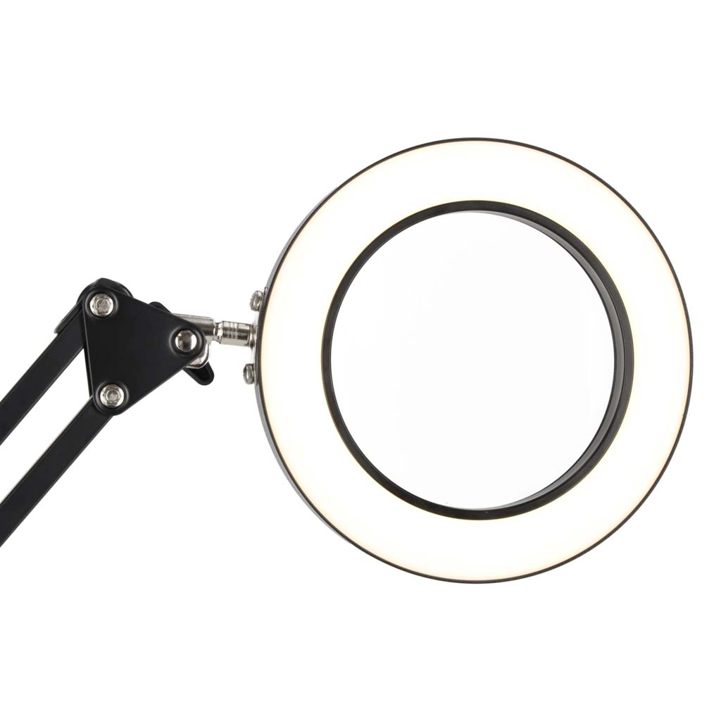 Cette élégante lampe LED noire combine éclairage et loupe x3 en un seul produit, idéale pour le modélisme, la couture, l’électronique, les loisirs créatifs ainsi que pour la lecture de petits caractères. L’anneau LED circulaire offre une lumière uniforme et non éblouissante avec un rendu des couleurs fidèle (CRI > 80) pour des détails nets et confortables à observer.