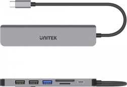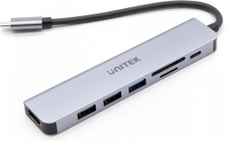Élargissez les possibilités de votre appareil USB‑C avec ce hub universel 7‑en‑1. Connectez simultanément un clavier, une souris, un disque externe, une carte d’appareil photo et un écran 4K – le tout via un seul port. Grâce au Power Delivery 100 W pass‑through, vous pouvez travailler et recharger votre ordinateur portable en même temps, sans compromis.