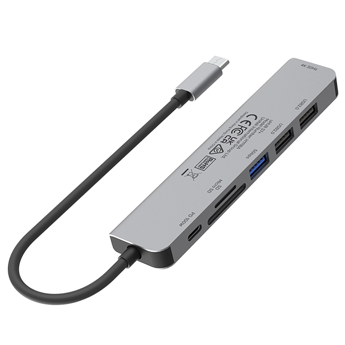 Hub USB-C 7‑en‑1 compact et performant pour ordinateurs portables et tablettes modernes. Il offre un HDMI 4K (30 Hz), des ports USB rapides jusqu’à 5 Gbps, un lecteur SD/microSD et une alimentation pass‑through Power Delivery 100 W. Boîtier élégant en aluminium et câble intégré de 15 cm pour une utilisation pratique et fiable à la maison comme en déplacement.