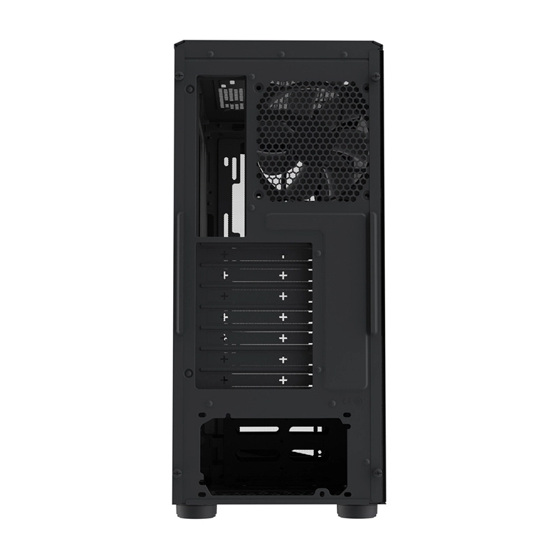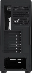 Le boîtier prend en charge jusqu’à 6 ventilateurs et des radiateurs de refroidissement liquide (avant jusqu’à 280 mm, dessus 240 mm avec une hauteur de RAM jusqu’à 35 mm, arrière 120 mm). D’origine, il est équipé d’un 1× MasterFan Lite à l’arrière, aidant à maintenir des températures optimales même pour des configurations exigeantes. Grâce à son intérieur spacieux, vous installez aisément de longues cartes graphiques et des ventirads plus hauts.