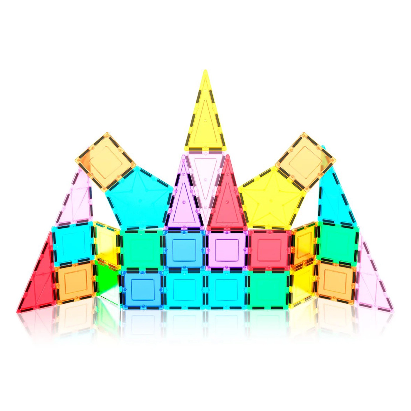 Ce set coloré de tuiles magnétiques est idéal pour les petits constructeurs. Grâce aux bords magnétiques, les pièces s’emboîtent sans effort, permettant aux enfants de construire rapidement des modèles 3D stables – de la fusée aux créations imaginaires. Les couleurs translucides et les formes géométriques invitent à l’expérimentation et développent la motricité fine ainsi que la pensée logique.