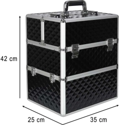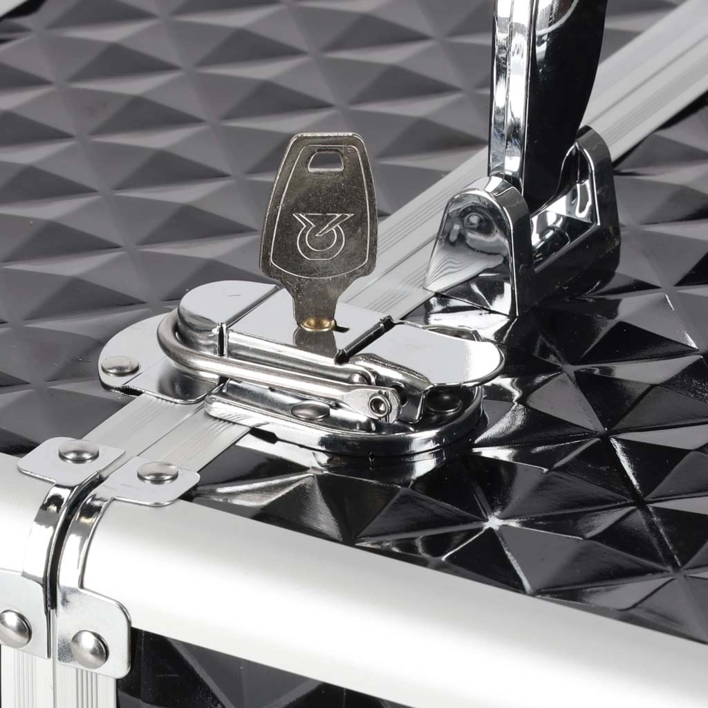 La mallette est verrouillable (2 clés incluses), afin que vos cosmétiques et instruments restent en sécurité. Grâce à sa poignée ergonomique et à ses dimensions compactes, vous la transportez facilement en voiture, en studio ou en prestation.
