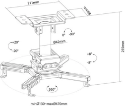 Le support plafond universel pour projecteur Neomounts CL25-530BL1, avec une capacité de charge jusqu’à 45 kg, offre quatre bras extensibles et des options de réglage avancées pour un alignement parfait de l’image. Grâce à l’inclinaison ±20°, la rotation à 360° et le réglage du roulis ±8°, vous positionnez facilement le projecteur avec précision sur l’écran, le mur de projection ou dans une salle de réunion.