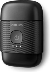 Un corps compact avec étui de protection et verrou de voyage est idéal pour le sac. L’IPX7 permet le rasage à sec ou humide et une charge rapide de 5 minutes suffit pour un rasage complet.