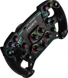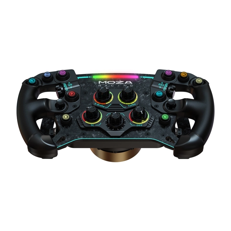 Pour un contrôle maximal, vous disposez de 8 boutons RGB, de 2 boutons arrière programmables, de 3 encodeurs rotatifs, de 2 molettes, d’un sélecteur 7 directions et d’un joystick. Dix LED d’indication de régime avec 16,7 millions de couleurs sont configurables dans MOZA Pit House, tout comme l’interface complète de l’écran. Le système de quick-release en aluminium permet un changement de jante éclair, tandis que la connexion sans fil et filaire assure une compatibilité totale avec les bases MOZA et, via un adaptateur universel, la prise en charge des solutions tierces.