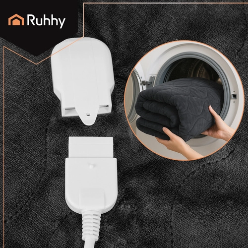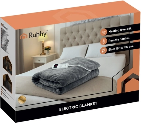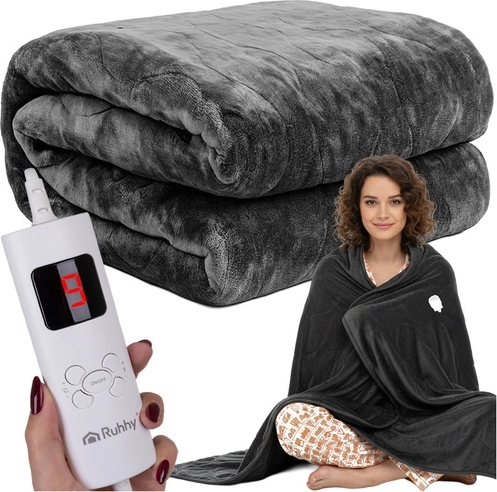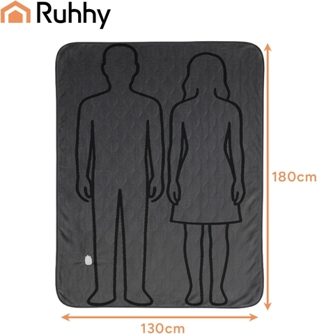 Profitez d’une chaleur immédiate et d’un confort optimal avec la couverture électrique RUHHY de 180 × 130 cm. Elle offre un chauffage rapide, 6 niveaux de température, un matériau doux et agréable et un contrôle intuitif via une télécommande avec écran LED. Grâce à la protection contre la surchauffe, au thermostat et à la possibilité de lavage en machine à 30 °C, elle est idéale pour les soirées fraîches, la détente musculaire et le repos au lit ou sur le canapé.