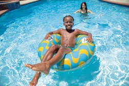Vinyle non nocif pour la santé d’une épaisseur de 0,23 mm, résistant aux sollicitations estivales, garantissant une utilisation durable à la piscine comme en mer.