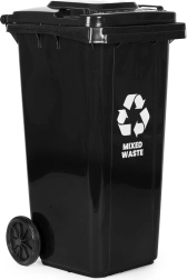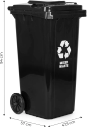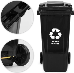 Le conteneur est conforme à la norme EN 840, il est donc pleinement compatible avec les équipements de collecte. Des pieds stabilisateurs antidérapants maintiennent la poubelle fermement en place, même sur sol humide. Avec son volume de 120 L, elle est idéale pour les foyers, établissements et services et favorise une gestion responsable des déchets.